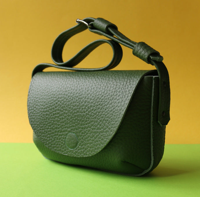 In my collection I use only bovine leather. For the colors Black, Pepper, Champagne, Blue and Pink this is Lindos, a chrome free calf leather. I try to select materials that provide all the qualities needed to make a good bag. This way hardly any additional materials are needed. For example, the leathers are finished on the inside so that no particles or color will come off. This way I can use it without lining. And with lining fabric always being weaker than leather, this makes the bags last much longer. If you would like to see the material and color before purchasing your first bag, you could consider the 'Berry', a small wallet. I can send along swatches of all the colours.