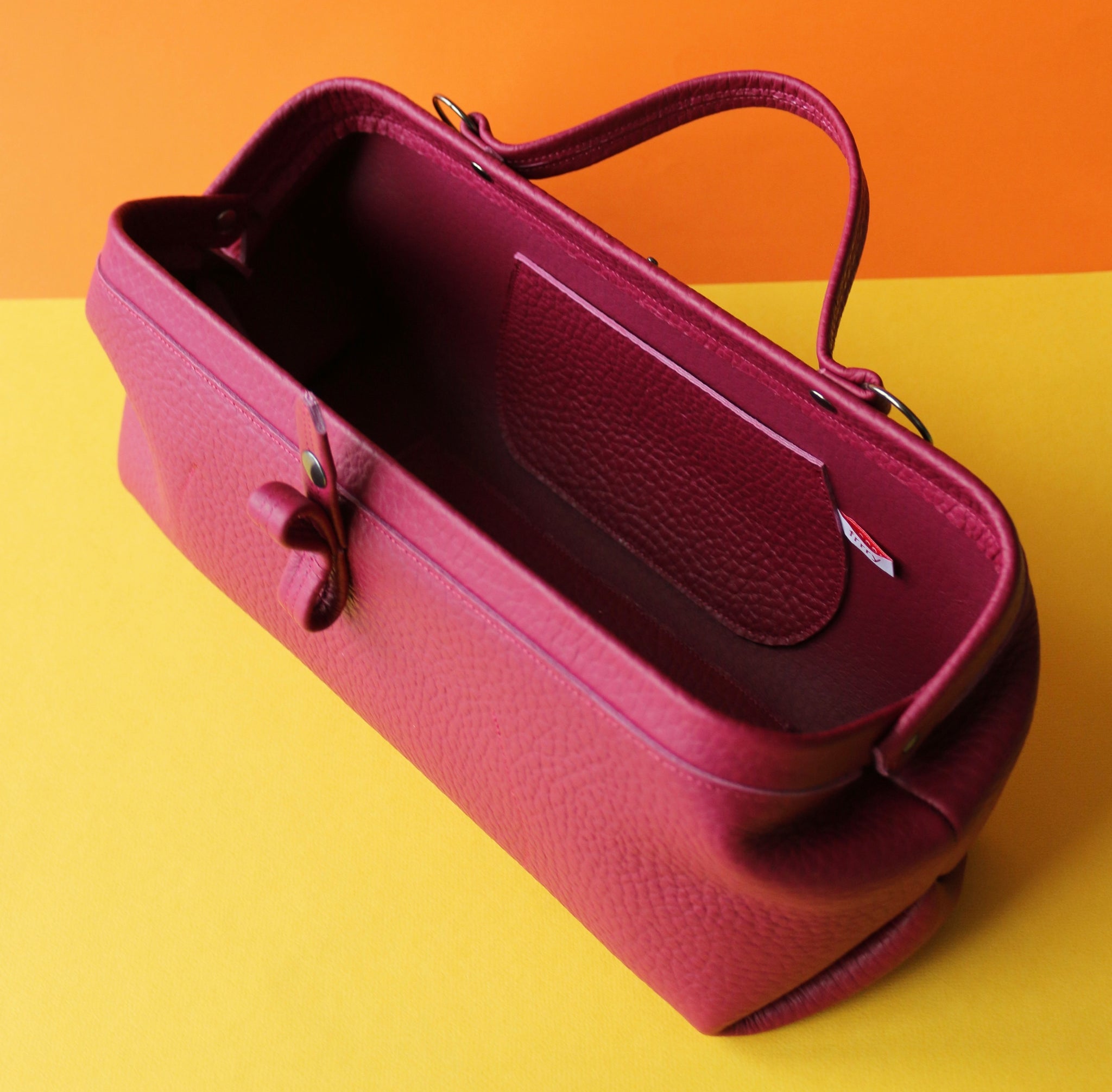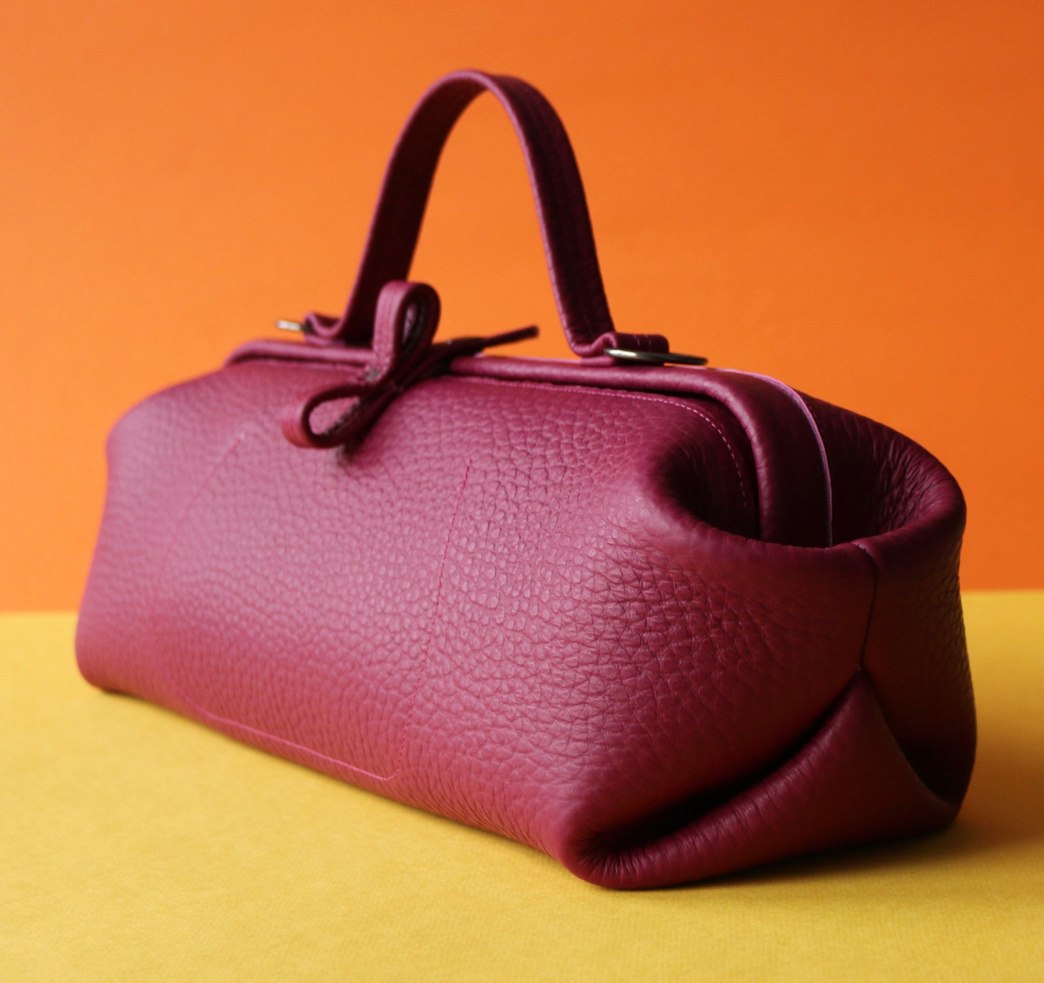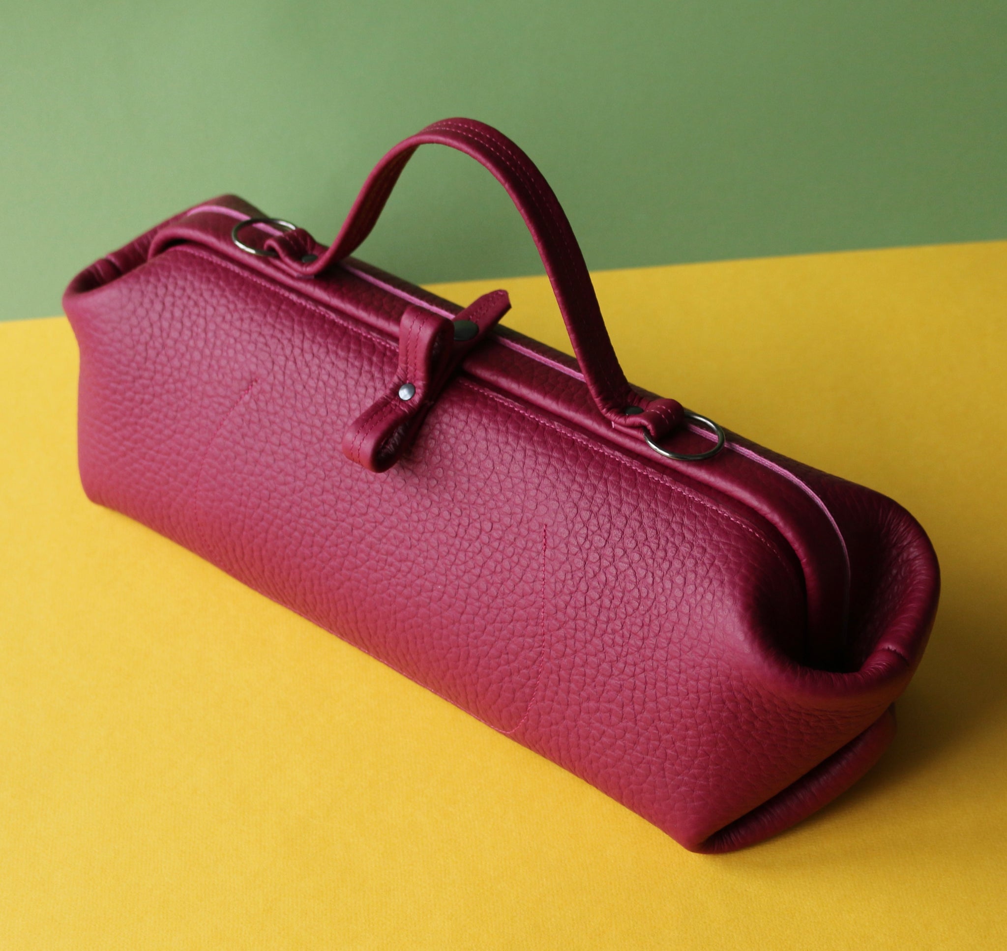 Here's an elongated frame bag. It might come in handy for knitters. Or for anyone who likes to keep their stuff neatly organized.